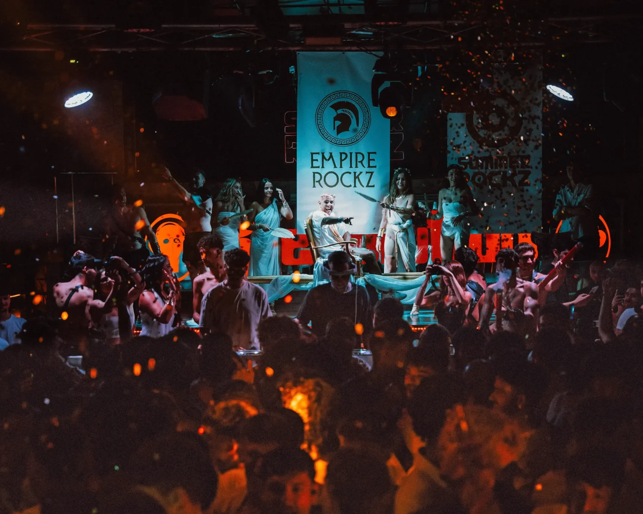 Un viaggio nell’antica Roma con 2000 italiani vestiti di bianco. Gladiatori, colonne, statue e dj set in una delle discoteche più grandi di Lloret per un’esperienza epica.